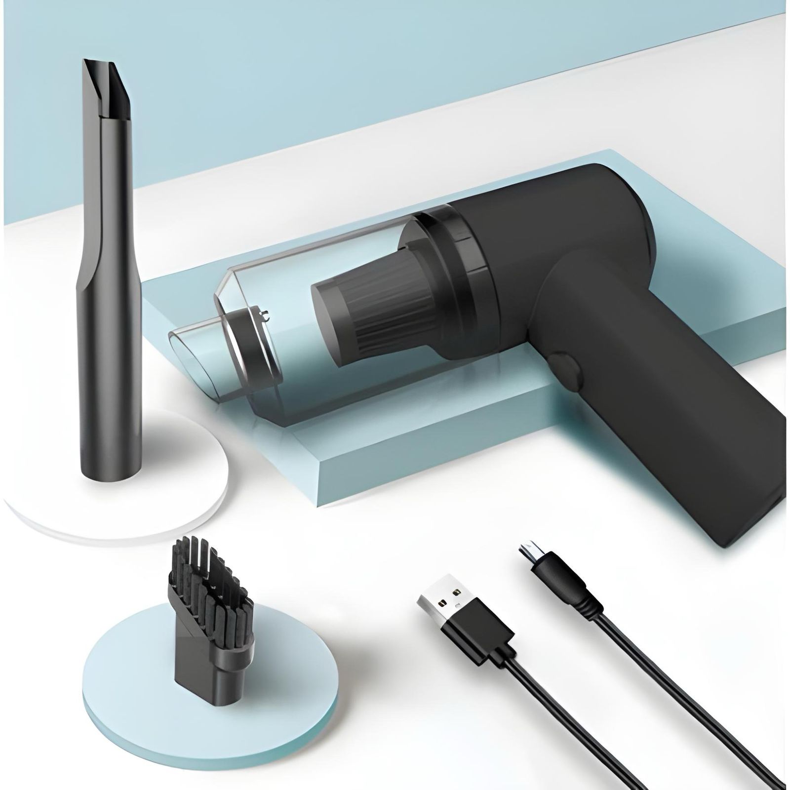 Graças à sua entrada USB-C de carregamento rápido, o Aspirador Portátil Sem Fio atinge carga completa em aproximadamente 2 horas. Você pode carregá-lo no carregador do celular, no notebook ou até mesmo na entrada USB do seu carro, garantindo que ele esteja sempre pronto para o próximo “acidente” com migalhas.